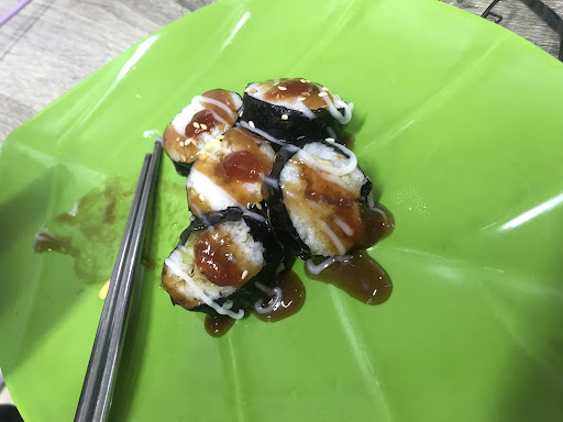 Tantanmen-nya aku suka banget (aku penggemar berat makanan pedas), didalam pengajiannya ada telur rebus seperempat dari 1 porsi utuh, jagung manis, ayam yg potongannya beragam (rasanya manis² seperti rasa ayam-nya mie Ayam), dan ramen. Kuahnya gurih pedas keruh mungkin pake pasta wijen (aku ndak tau jg), dan agak kehijauan & makannya bisa jadi berkeringat!!🤣 Kalo Takoyaki, satu porsi isi 5 tekstur lembut ukurannya pas isinya crabstick (ada ayam juga, utk cumi/guritanya kosong) ada isian jagung manisnya juga, pastilah diberi taburan Katsuobushi yg tidak begitu banyak, saus dan mayonaise. Dikarenakan aku kekenyangan makan Tantanmen, aku minta tolong dibungkusin lagi dan dikenakan biaya Rp 2000,- . Peralatan makan dapat diambil mandiri ditempat yang sudah disediakan.