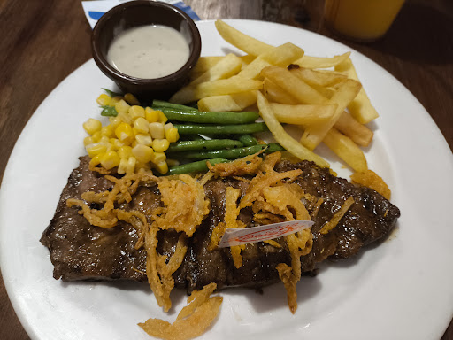 This is one of the consistent steakhouses I've ever dined in. Because the first floor was crowded, we dined on the second floor, which was practically empty. The server was nice enough to turn on the AC for us. He was good at explaining the menu. We chose the combo meal of medium well Buddy steak with sudes of french fries and mashed potatoes and the vegetables with mushroom sauce for the steak. We had sejora mango for drinks, and it was refreshing! Definitely must try. When the stakes came, the server asked us to see if it's cooked as we requested. And it was. The steaks were tender and easy to chew. Just enough saltiness. The green beans and corn had just the right crunch and sweetness. The mushroom sauce complements the steak, and the mashed potatoes were of the right consistency. Overall, it was a pleasant...