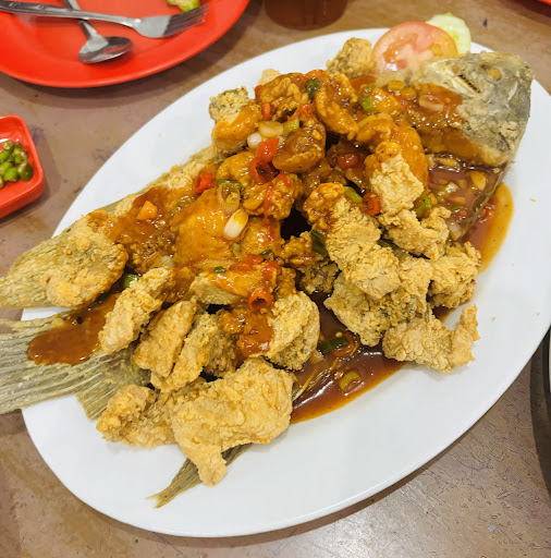 We came here on weekday, and resto was quite hectic at dinner time. We had Ikan Gurame Fillet Saos Rica, Fuyunghai Kepiting, Nasi Goreng Babi Lapciong (L), Kodok Batu Goreng Mentega, Fumah Cah Polos, and Ayam Kungpao. Gurame was nice, meat was tender and crispy on the outside, but the sauce was on the sweeter side and not spicy, doesn’t have rica taste. Fuyunghai was delicious, crispy on the outside, the crab meat inside quite generous, it’s just need more seasoning (a bit bland) for the taste. Nasi goreng large portion was so huge (can share for big family), taste was just okay, ingredients inside should have been more generous as we ordered large portion. Kodok goreng mentega was nice and decent portion. Fumak cah polos was okay. Kungpao chicken was my least favorite here, as the chicken meat was a bit too hard and dry (fried a bit too long), and taste wasn’t authentic kung pao, more similar to other “… goreng mentega” dish, and taste a bit too sweet for my liking. Service was normal, and a bit of waiting time for the food to come. Overall if you’re looking for chinese food with affordable price and big portion, this place is...