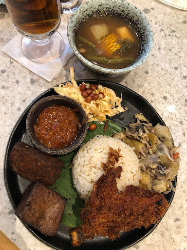 Read moreHonestly didn't have high expectation of this place. Thought would be just another cute new restaurant but I'm so glad I gave it a try! Ordered the nasi liwet jantung pisang, cireng, and a cup oh hot tea on a rainy afternoon, it was heaven! The nasi liwet consisted of asinan, which was amazing, fresh, crunchy and just the right acidity and sweetness. The jantung pisang was just delicious. The tahu and tempe bacem was marinated just right oh so good and sayur asem was refreshing. The only thing I didn't quite like about the nasi liwet was my fried chicken, it was too salty and hard to chew. Next time I'll try ordering with ayam bakar or empal instead. The cireng was just amazing! Just the right chewiness, saltiness and crispiness. The sambal was sweet a bit tangy and not too spicy. Really complementing the cireng. Oh and another portion of asinan yay. The hot tea was javanese jasmine tea, nicely brewed. Try to avoid sitting...