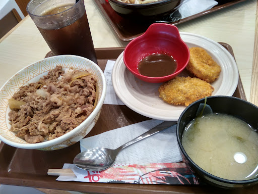 Food quality : lumayan, tapi dibandingkan kompetitor-nya, Yoshinoya, rasanya biasa saja. Beef nya juicy tapi nasi nya agak kering. Saya pesan half boiled egg gyudon dengan paket gorengan premium yang seharusnya ada 3 jenis item didalamnya. Saat pesanan tiba, telur nya terlalu matang dan gorengan hanya ada dua jenis. Saat saya tanyakan, ternyata habis dan diganti dengan satu jenis item yg ada (chikuwa). Proses penggantian ini juga lama sekali, 10-15 menit(lumayan lama jika melihat bahwa itu hanya mengganti barang saja). Saya orangnya tidak bisa makan tanpa side dish itu, jadi makanan saya makin dingin karena menunggu datangnya makanan tersebut.