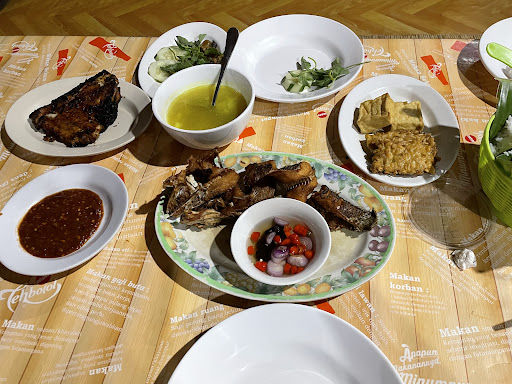 Read moreKetika sampai di depan (parkiran), restoran ini terlihat bagus dari segi penampilan fisik, parkir yang luas dan rapi. Masuk ke dalam kita langsung disambut oleh penerima tamu dan langsung diarahkan untuk melihat menu kemudian memesan makanan. Selesai memesan makanan kita langsung diarahkan untuk masuk ke dalam, memasuki area yang sudah ditentukan. (saran saya pilih tempat dulu baru pesan makanan) meski kita bisa request tempat tapi ini menurut saya membuang waktu beberapa menit. Atau umumnya kan tamu duduk dulu ditempat yang mereka pilih, lalu dibawakan menu untuk dipilih. Secara lokasi, restoran ini memang menarik karena berada persis disamping sungai Kahayan, beberapa ratus meter dari jembatan Kahayan. Sambil menikmati sajian, kita bisa menikmati pemandangan sungai yang sebetulnya tidak indah, karena sungainya berwarna coklat atau berlumpur, terlepas dari warna sungai yang berlumpur, pemandangan kebun di sebrang sungai menjadi nilai tambah tersendiri. Menu utamanya tentu saja ikan bakar khas palangkaraya, ada ikan Patin, Nila, Lais dan lain-lain, secara rasa cukup enak, standar ikan bakar tidak terlalu istimewa, yang saya suka kuah santannya sangat cocok dengan ikan bakarnya. Sambal yang mendukung menjadi perpaduan yang nikmat saat menyantap hidangan ditempat ini. Sayangnya, menurut saya nasinya terlalu bear. Kebersihan tempat ini cukup baik, terlihat beberapa kru yang dengan sigap membersihkan tempat makan usai ditinggalkan tamu. Secara umum, kebersihan ini dari area parkir hingga ke dalam, TOP lah. Harga? Entahlah saya juga baru ngeuh ketika sudah di hotel, kami makan berempat tapi saya lihat notanya hanya 300 ribuan, menurut saya sih murah, mudah-mudahan tidak salah hitung. Saat kami berkunjung, Tempat ini juga menyediakan live musik untuk menghibur para tamu. Untuk kalian yang sedang berkunjung ke Palangkaraya, tempat ini saya rekomendasikan untuk dikunjungi, rasakan sensasi makan ikan sungai,...