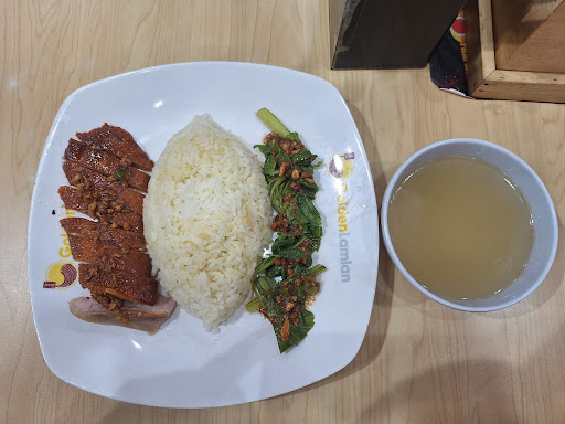 Sementara itu, kakak saya memesan Nasi Hainam Bebek (atau mungkin namanya sedikit berbeda), yang terdiri dari bebek, sayur, dan kuah. Rasa nasi dan kuahnya sangat enak, namun rasa bebeknya kurang memuaskan karena masih terasa sedikit mentah.