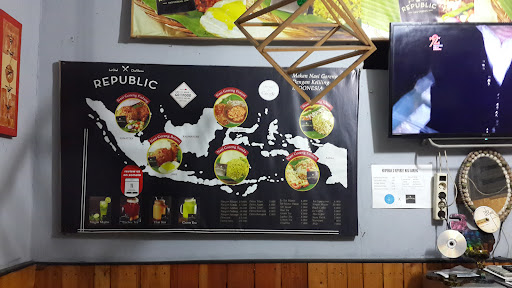 Udah dari lama pengen nyobain nasi goreng disini, akhirnya baru sempet ksni dan nyobain. Dan ternyata yang punya itu keluaran masterchef 2019.. untuk pelayanan nya sih pada cepat tanggap,ramah dan ga menunggu lama.. kebersihan nya juga lumayan bersih.. tadi aku pesen nasi goreng penyet ga sempet foto sih heheheh.. bayangan aq bakalan enak bgd, ternyata sedikit mengecewakan karna rasanya sangat amat asin, ayamnya sih empuk, dan sambalnya agak asam gtu. Sebenarnya dari bumbunya itu terasa rempah2nya, enak sih tp karna kebanyakn garam jadinya tidak bsa di nikmati makannya..utk republic nasi goreng tolong diperhatikan lagi sebelum di berikan ke customer cek rasa nya dlu biar customer tidak kecewa.. Next sih aq mw cba pesen yg lain smga ga asin lagi kyk td aq pesen 🙂 lagi apes aj td aq beli dptnya yg asin heheheh Overall sih ok pilihan menu nya banyak dan beda dari nasigoreng2 lainnya.. Sukse terus...