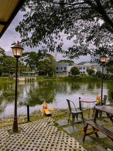 Read moreCafe dengan pemandangan danau buatan yang kelihatannya menyambung dengan sungai di sekitar. Akses masuk sama dengan kolam renang, dengan gardu otomatis. Kesini sekitar jam 3 sore, pilih minuman dan pesan snack yang direkomendasikan staf nya, lumayan enak tapi bukan sesuatu yang wow. Kita duduk di tempat paling pojok menghadap danau, cukup teduh, nggak gerah karena ada angin, lumayan enak buat kumpul dan ngobrol bareng teman. Ada hal menarik karena saat pesanan sudah datang semua, ada staf yang menyapu daun sekitar meja dengan sapu lidi, saya paham maksudnya tapi menurut saya itu sedikit kurang tepat karena debu dari bebatuan bisa terbang ke makanan kami dan meja sekitarnya yang bahkan lebih rendah. Selama bukan sampah makanan, menurut saya daun tidak mengganggu karena itu bagian dari konsep outdoornya dan bisa dibersihkan saat prepare atau closing cafe. Semoga lebih peka lagi terhadap sekitar dan...