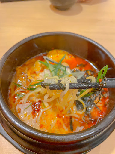 Makanan: Ramen Chicken Chasiu Mala Soup Rasa kaldu malanya enak. Pedesnya ngga bikin kaget. Berlahan bikin soft gitu. Terus lama-lama hint pedasnya baru timbul. Tekstur ramennya kurang enak. Terlalu lembek dan anyep karena kelamaan dimasak