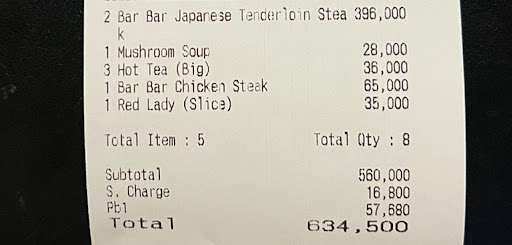Read moreHad anniversary supper today, everythig met expectation, one thing i notice most of the food seasoned naturally, i assumed because it wast strong just perfect, for juice there were not much of sugar added or probably pure from the fruti, the tea however needs a little splash of citrus to make it oerfect, i had peach iced tea, for the steak, top notch, delicious flavot, nice texture, vegetable were fresh and enjoyable for us the non vegetable fan, pasta was perfect as well satisfying portion with delightful taste, the dessert (almost eight) were not available, but the exotic manggo is undertoned almost got us fooled, because we taste it elemets by elemets, then when we scoop down to its base, it was perfect very buttery crumbs, nice cream chantily, and it used real white chocolate, most definitely comr back, so are you if you're in Pekanbaru, you got to have some...