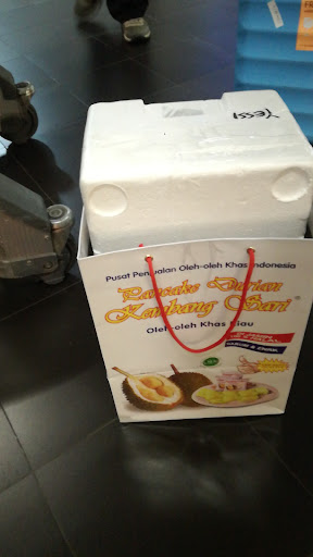 This is an official store of Kembang Sari if you are looking for Riau delicacies as gift. The specialty is the famous durian pancake. Pack of 2 is IDR 21k, pack of 6 is IDR 60k, pack of a dozen is IDR 116k. There are other food too...