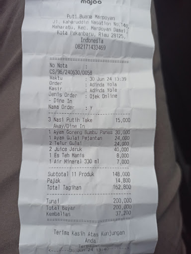 RM. Pak NurdinJl. Kaharuddin Nst No.4142, Perhentian Marpoyan, Kec. Marpoyan Damai, Kota Pekanbaru, Riau 28284, Indonesia