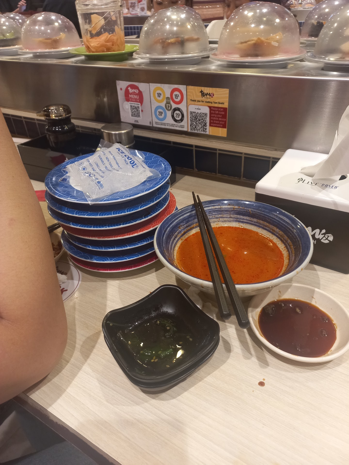 Read moreSebenarnya agak kecewa ke tom sushi yg di ska ini, pelayanannya tidak buruk bgt tpi cukup bikin beteeee. Tadi lgi waiting list lumayan banyakk org, saya tidak mau sharing table jadi memilih untuk duduk di sushi bar ajaa berdua, cuma karna penuh jadinya menunggu. Lalu pelayannya menanyakan ke orglain ada yg mau sharing soalnya meja untuk 4 org lagi kosong dan bisa duduk, kebetulan ada cewek berdua baru dtg dan dia mau sharing, cuma sebanyak ygnunggu tdi belom ada yg mau sharing, tpi 2 org cewek yg baru dtg udh lgsg dikasi duduk pdahal itu meja sharing?? Kok bisaa?? Karna sebelom nyaa pernh kesini jugaa tpi yg tersedia cuma mejaa untuk 4 org itupun gkbisa lgsg duduk karna cuma berdua kalau mau sharing harus tunggu ada customer dtg yg cuma ber 2 jugaa, baru bisa bareng duduk. Tpi pas hariini dtg kok beda lgi. Dan 2 org cewek itu udh lgsg dilayani. Harusnya konsisten dong. Kita yg udh berkali dtg jadi udh males bgt. Jgn melayani org sukasuka hati.