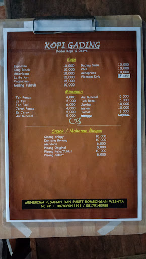 Read moreHaloooo guys para wisatawan yang sedang mengunjungi destinasi wisata di gunung kidul, jangan lupa mampir di Kopi Gading untuk beristirahat sejenak sekaligus mengisi tenaga, di sini terdapat menu makan spesial Kambing yang sangat enak dan juga dengan beberapa menu lainya yang cukup komplit, tentu saja dengan harga yang terjangkau. Lokasi luas cocok untuk rombongan dengan fasilitas tempat parkir yang luas bisa untuk 4-5 bus besar, bagian dalam juga cukup nyaman dengan berbagai hiasan taman menambah nikmat menyantap hidangan. Tak lupa juga dengan kopi khasnya yaitu KOPI GADING cukup menggugah selera bagi yang hobi minum kopi, sangat cocok untuk nongkrong bersama kawan atau rekan...