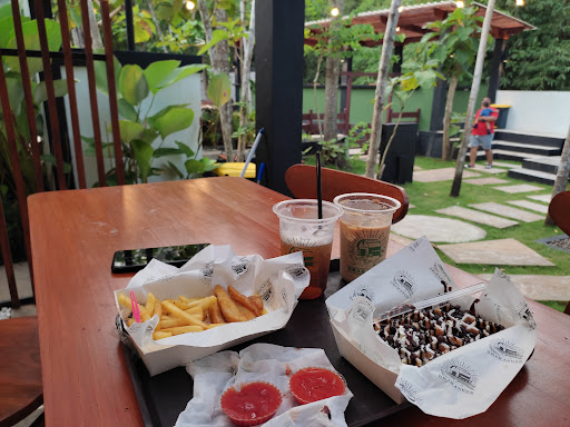 Β Β Β Read moreAmbience: jauh dari pemukiman sehingga sepi, cocok untuk yg mencari suasana sepi saat belajar/bekerja Outdoor: luas, jarak antar meja tidak sempit, rindang, terdapat atap untuk kursi riverside Indoor: ac, tersedia 8 kursi namun cukup luas tidak terlalu berdempetan Fasilitas: wifi, colokan di setiap tempat duduk, mushola + tempat wudhu outdoor, kamar mandi (kloset duduk + urinoir) Service: memuaskan, menggunakan device yang membantu memudahkan untuk self service jadi staff tidak memanggil satu-persatu, menyediakan tempat sampah untuk membersihkan bekas makan/minuman sendiri Minuman: range dari 7k-23k, banyak jenis, enak tidak terlalu creamy Makanan: beragam dari snack hingga makanan berat, rasa standar, harga seperti resto