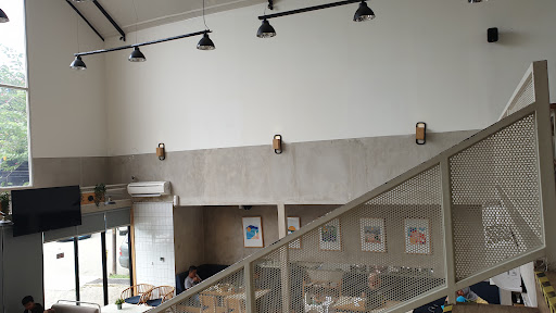Read moreKopi Praja ini coffeeshop di Bintaro yang pertama saya kunjungi. Tiba di sana masih pagi, sekitar jam 8.30 an dan kopi praja baru buka. Tempatnya sangat luas. Pintu masuknya ada di bagian samping. Begitu masuk bisa langsung lihat coffee barnya dan tempat pesan makanan. Coffee barnya ada di bagian atas. Turun ke bawah ada banyak meja dan kursi. Yang unik di sebelah kiri tangga ke bawah ada deretan tempat duduk lengkap dengan stop kontak untul charging hp atau pun laptop. Interior terkesan simple dan minimapis tapi terlihat bagus dan luas.
