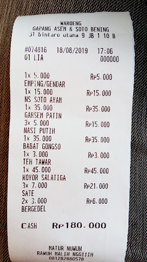 Read moreBaru sekali ke sini, karena lagi pengen makan babat gongso. Ternyata di sini modelnya beda dengan babat gongso Semarang, di sini babatnya merah berkuah manis. Pelayanannya juga agak berantakan (karena kata pelayannya sedang kekurangan orang). Pesan nasi soto campur, nasinya sedikit (cuma 4 atau 5 sendok makan, mungkin mbaknya mikir gw perlu diet). Sate2 dan perkedel juga ga dikasih (padahal meja sebelah dapet, dan akhirnya baru dikasih setelah soto gw habis 😕). Garang asem patinnya standar, kuah koyor Salatiganya cenderung kurang rasa. Sate2nya ok lah, perkedel kentangnya commendable. Harga mahal untuk menu2 & kualitas seperti ini. Lokasi pinggir jalan, ada parkiran utk motor. Pelayanan ramah, bayar bisa cash / kartu2an /...