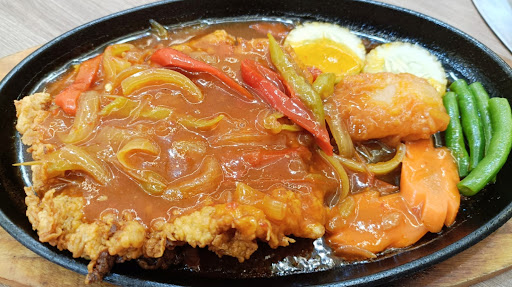 We also tried their signature Chicken Steak on a sizzling plate. Juicy, saucy, and still famous for a reasonโthe black pepper sauce was bold and comforting. To finish, we shared a plate of singkong Thailand and air tahu.