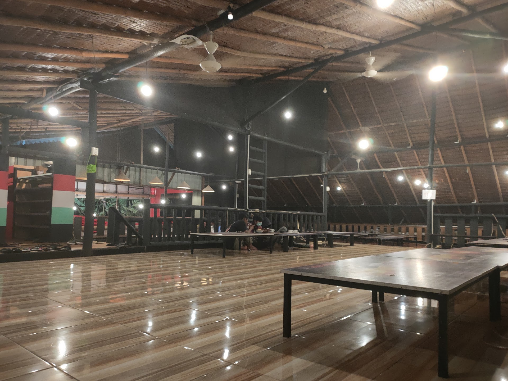 🐥Ada 2 lantai. Lantai bawah paling adem di pojokan. Meja dan kursi kayu, juga ada kursi plastik. Di lantai atas bisa duduk lesehan atau baring-baring. (Jangan ragu dan sungkan untuk bersantai)