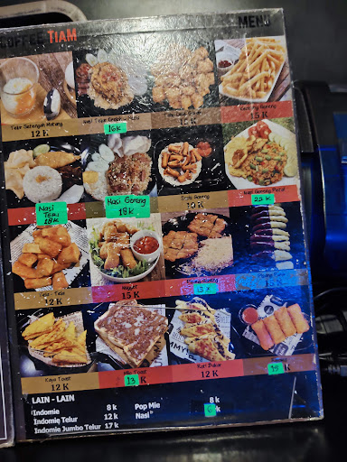 Variasi menu lumayan banyak, makanan berat dan ringan, cemilan, mie sachet, pop mie hingga rokok. Nyobain kopi susu, indomie dan roti bakar coklat. Indomienya lumayan enak standar warkop, untuk kopi racikannya pas, yang paling enak roti bakar coklatnya wajib di coba asli enak.