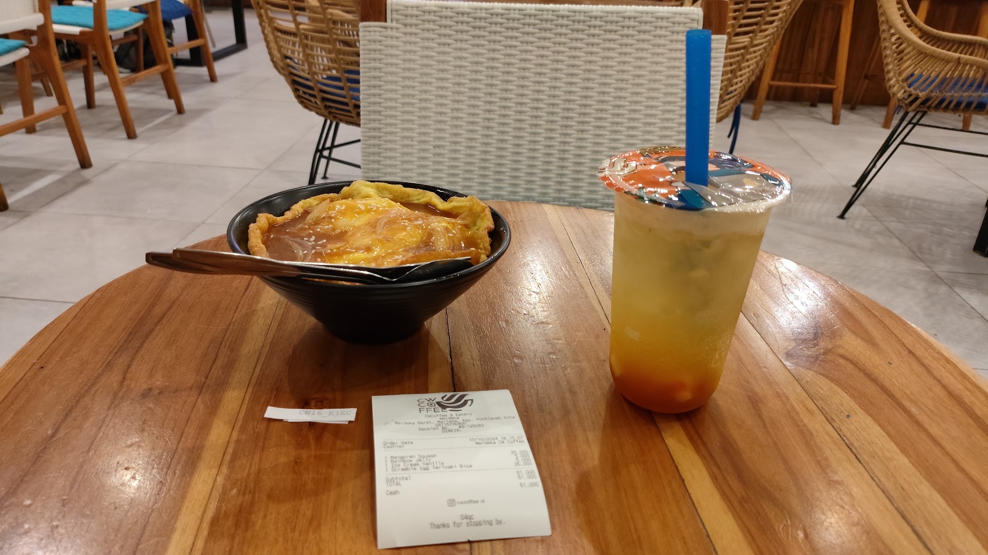 Saya bersama istri mencoba menikmati CW Coffee Memesan Mix Snack (maybe its such like a platter) Avocado coffee Coffee Latte Mix Snack seharga 30 rb, berisi kentang kurang dr 100 gr, sosis goreng biasa 4 potong dan kurleb 2 buah nugget biasa yg dipotong menJadi 4 potong, disajikan dg taburan garam tanpa garnis, rasanya biasa saja Avocado coffenya enak Coffee lattenya berasa espresso yang terlalu kuat, dengan campuran susu yang menurut saya komposisinya kurang tepat, dan latte artnya sangat berantakan, mungkin ingin menggambar hati tapi foam susunya tidak terbentuk, terlalu encer sehingga sulit memberikan sentuhan art di atasnya Rasanyapun tidak menggambarkan rasa latte yang lezat, lebih seperti sekedar espresso dan ada campuran susu. Keramahannya sangat standar, sapaannya tidak dilakukan dengan bertatap mata, mungkin karena sibuk mengamati perhitungan atau apa.. Dengan intonasi standar dan terkesan formalitas. Tempatnya keren, sayang kurang bersih dan sebaiknya lebih dirawat, supaya semakin mengesankan tempat berkelas