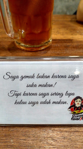 Logo nyonya rawit terpampang gede bgt sehingga mudah terlihat dari kejauhan.. Tempatnya Bagus bgt, swasana santai sudah berasa begitu kita masuk.. Menu sangat bervariasi, harga standard, porsiannya gede bgt kalo buat aku hehehe.. Semuanya sudah baik menurut saya, cuma satu hal yg kurang berkesan.. Pelayanannya banyak yg jutek, td yg order saya gak fokus, jd saya kudu berkali2 ngulang pesanan saya.. Harusnya kan ya bagian pelayanan mukanya kudu senyum.. Tp ini senyumnya kurang padahal masih awal bulan lok kak hehehehe.. Semoga kedepannya bagian pelayanan lebih ramah.. Bagian dapur juga senyum lah kk.. Soalnya sempet cari toilet yg terlihat bagian dapur, itu mukanya akhir bulan bgt.. Hehehe.. Semoga bisa menjadi koreksian yg baik ya buat...