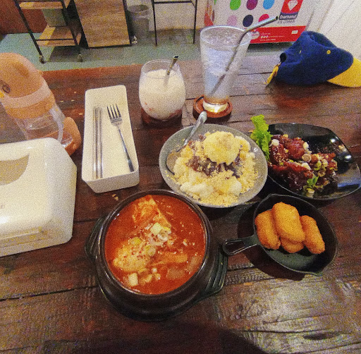 •Sundubu Jiggae 4/5 •Dak Gang Jeong + Rice 4,5/5 •Nugget (standar lah, spt nugget biasanya) •Patbingsoo 4/5 •Ttalgi latte 5/5 😍 •Kojito Lemon 5/5😍 Itu saja sih review saya utk kokape. Pokoknya semoga segera bisa diperluas...