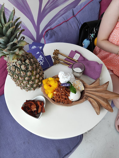 we ordered mango sticky rice and it was deliciously fresh. the portion was adequate, it was beautifully presented (a feast to the eyes), and it had several textures which i love - fresh mangoes, cool acai, crumbly toffee and chewy sticky balls, everything blended harmoniously into one acai bowl.