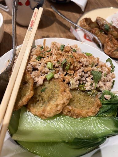 Hanya saja staff yg baru sepertinya kurang training, karena membuat 2 kesalahan: saat saya order mie ayam, dia bertanya “topingnya apa kak?” saya bingung, padahal saya lihat di fotonya mie ayam itu sudah dapat toping, saya pikir “oh boleh milih ya toping kali ya”, lalu saya tanya bedanya hekeng dan bakso goreng apa, dia tidak tahu dan melempar pertanyaan ke teman nya yg agak gemuk dan sudah berpengalaman. Karena tertarik dengan hekeng akhirnya saya memutuskan membeli itu.