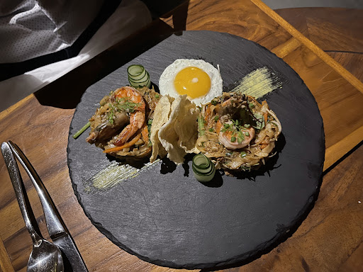 Read moreThe setting here is breathtaking — bamboo architecture, infinity pools, and jungle views make it one of the most beautiful dining rooms in Ubud (5 stars for atmosphere). Service is cordial and welcoming, though our dishes took nearly 40 minutes to arrive without warning, which dampened the experience (3.5 stars for service).