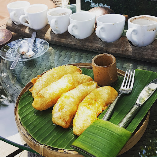 For the tea taster set and small mineral water bottle and banana fritters we spent 120k IDR (12 SGD).