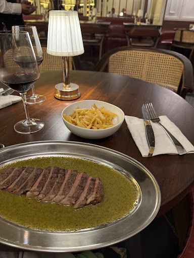 The experience begins with a welcoming ambiance—sophisticated but unpretentious, ideal for both a romantic night out and a lively dinner with friends. The signature steak is the undeniable highlight: beautifully cooked, tender, and drizzled in a rich, flavorful sauce that keeps you coming back for more. And the all-you-can-eat fries? Perfectly golden, crispy, and addictively good.