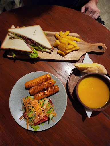 What we ordered: Carrot soup - 4/5 - really good and peppery. Sausages - 2/5 - the texture was weirdly smooth all throughout and was lacking in flavor, except for the sweet chili sauce that came with it, but not from the sausage itself. We didn't finish this one. BLT sandwich - 4/5 Spaghetti Bolognese - 4/5 - very good, a bit small and could have used a bit more beef or cheese, but overall taste is great! Chocolate funnel/lava cake (forgot the actual name) - 2/5 - the texture of this was really weird, it's not like eating a cake at all. It was much more mushy, like raw pancake batter, and the chocolate was more sugar than actual cocoa, would not recommend. Black sticky rice with ice cream - 2/5 - this is not for us, and we only took a few bites but gave up on it. The flavor was weird and not sweet/dessert like. Perhaps we're just not used to it, but definitely would not recommend.