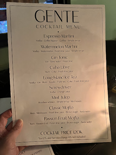 The menu may be concise, but it’s packed with delicious options. I highly recommend the grilled octopus—it’s the most tender I’ve ever tasted! Whether you're in for a casual meal with friends or a romantic dinner, this place has it all. Located on a quiet street at the entrance to Berawa, away from the tourist crowds, Gente offers a chic, refined atmosphere and absolutely delicious homemade dishes made from fresh ingredients.
