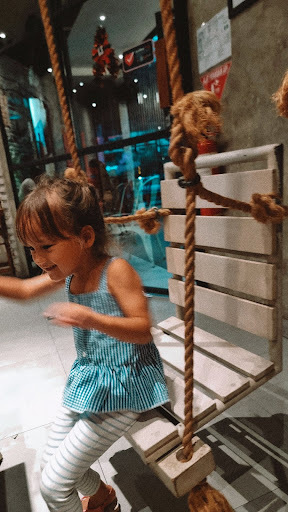 The swings at the big table are really fun to sit in.. for like 10 minutes. Then you just bang against the table haha. We accidently ordered an extra portion of fries: the meal comes with coleslaw and fries actually (I thought I had to pick).