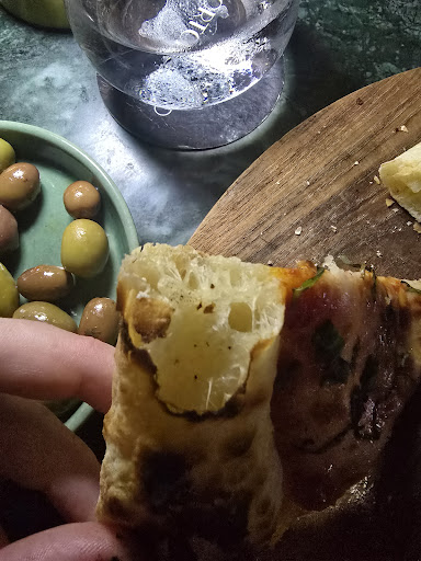 🌙 This night here I am. Tasting some olives, the best olives I ever had (they’re flavored with orange peel) and drinking kombucha (with mango). 🥂🫒