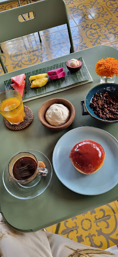 Delicious breakfast set. Jamu, coffee, fresh fruit, tasty granola, thick yogurt, pastry of choice. I went for lychee-raspberry bomboloni, which despite being deep fried and full of cream was surprisingly light hah.