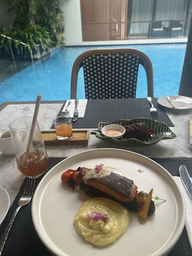 As I took my time browsing the menu, I was delighted by the variety of tempting options. Eventually, I decided to try the seared pan-fried salmon, and let me tell you—WOW! it was absolutely exceptional. From the moment it was presented, I could tell it was going to be a treat. The salmon was cooked to perfection 🤌🏼😋—crispy on the outside, yet tender and moist on the inside, and the dill cream sauce was the perfect finishing touch. It was clear that the chef truly understands their craft. My only minor critique is that some of the vegetables tasted a tad bitter—likely due to the freshness of the produce—but it wasn’t a dealbreaker at all. . The overall atmosphere of Shrida was so intimate and cozy, surrounded by lush greenery—it really felt like the perfect place to unwind and relax.