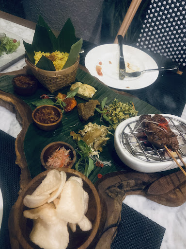 Between me and my husband, we ordered two starters, the sharing Indonesian platter, a glass of wine and two cocktails. The drinks were lovely; the cocktails in particular were the best we’ve had in Indonesia. The white wine was good. The starters were superb (goats cheese spring rolls + tempura prawns). The real highlight was the Indonesia sharing platter. It was so great to try such a range of different foods. The portion was also ginormous. I loved the explanation that came with each dish as well. The pudding was a cooled, chocolate dish with bits of fruit in, almost bubble tea style. All of this came to about £55.