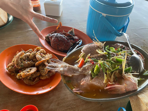 Chili pepper crab is too spicy to our liking. Smaller than I thought even though it’s big size. Salted egg prawn : too little salted egg taste but fried till very crispy that you almost can eat the whole thing without removing the shells. Red snapper steam thai style: the nicest of all: mild spiciness and mild sourness and it’s very appetising. Rice is foc. Overall food is very fresh.