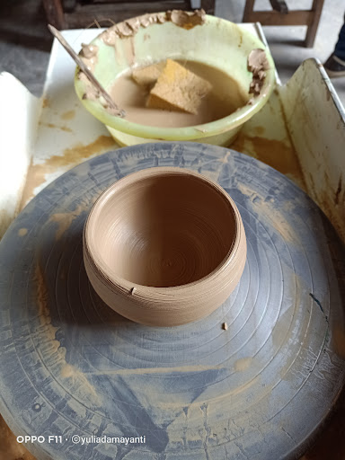 Saya sendiri tidak merasa sedang belajar. Clay hanya diletakkan di meja putar, lalu saya disuruh menekan pedal dan memutar clay. Memang dia sempat menunjukkan posisi jari dan gerakannya, tapi tidak ada penjelasan dasar—tentang tekniknya, tujuannya, atau konsep dasarnya. Padahal saya sudah bilang dari awal bahwa saya belum pernah belajar clay sama sekali. Seharusnya ada pengantar atau penjelasan sebelum langsung praktik. Tapi yang terjadi, saya hanya disuruh mengikuti gerakan tanpa tahu apa yang sedang saya lakukan.