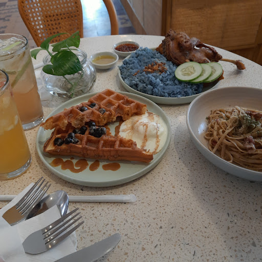 Read moreGot Bebek Goreng with Nasi bunga Telang, Truffle pasta, waffle, and 2 beverages that made by TEMA's tea. I'm so grateful for this place 🥺 but the duck's portion was kinda half-hearted for 2p portions, especially they served the duck and the rice in 1 plate, even though it supposedly for 2p portions. I think it's better to serve 2 portions of rice in 2 plates, with the duck on another plate, so the customer understood that it's for 2 portions. I wish they add 1p portion for the duck on the menu instead, for people who couldn't eat too much. Nice ambiance. I hope they will add egg tart near in the future. And Vegemite sandwiches maybe? Since the claim was Australian...