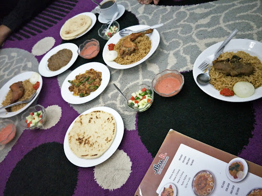 Β Β Β Read moreBeberapa kali kesini, rasanya ga berubah. Yang jadi favorit tentu aja khabsa ayam. Tapi tadi punya kesempatan ngerasain mugalgal, daging yang dimasak pakai rempah cabai dan bawang bombai. Dimakannya dengan roti khubuz sejenis roti gandum, dan salad. Enak banget.