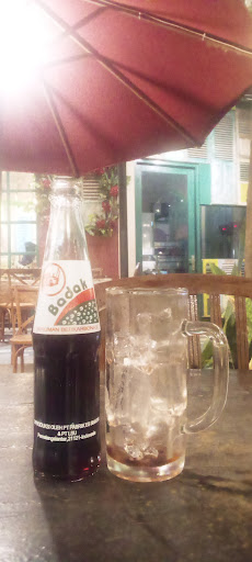 Bismillah Nemu BADAK disini Yes, saya nemu badak disini, tapi bukan literally badak. Di daftar minuman, ada tercantum ICE BADAK, dan itu menarik perhatian saya. Karena baru nemu disini, dengan gambar botol soft drink ( seperti botol minuman soda pada umumnya, tapi lebih klasik, old style), dan bertulis BADAK serta gambar kepala badak bercula. Saya tanya ke mbaknya, dan di jelaskan itu es badak sarsaparilla. Saya masih belum paham apa itu, tapi tetap pesan saja. Saya minta tanpa es, hanya menurut mbaknya dan juga teman di samping saya, tidak enak kalau minuman ini di minum tanpa es. Baik, saya menyerah, meskipun saya selalu menghindari minum dingin untuk alasan kesehatan, tapi kali ini saya beranikan diri minum es karena penasaran dengan minuman ini. setelah minuman datang dan langsung saya minum, memamg enak, seenak itu. Ini semacam root beer, tapi dengan rasa yg lebih khas. Di tambah saya jarang minum es, jadi sekalianya minum es rasanya segerrrr sekali ( dan bersiap2 kemungkinan efek samping setelah minum es ini, he he). Saya hanya campurkan dengan 2 potong es kristal, itu pun sudah sedap. Coba kalau es satu gelas saya pakai semua, pasti lebih mantabbb 😊