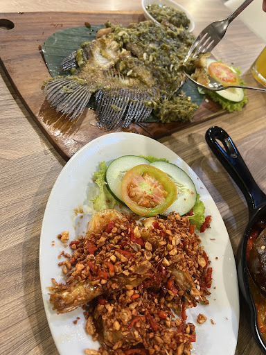Datang waktu promo pemilu tgl 14 feb '23. Masuk waiting list, tapi ga lama lgsg dapat tempat duduk. Pesan nasi gulai ikan, nasi ikan fillet telur asin, dan udang saus Padang. Minumnya es jeruk murni dan es teh manis. Yg keluar pertama minum. Es jeruknya ok, tapi terlalu manis. Untuk harga segitu jg terhitung mahal sebenarnya, ukuran gelas di atas gelas belimbing sedikit. Es teh pesan yg manis, datangnya tawar. Minta ganti, tapi masih tawar jg. Ternyata belum di aduk, gula nya masih di bawah. Baru berasa manis ketika sudah mau habis tehnya. Free refill es teh tawar dan nasi. Gulai ikan rasanya juara. Suka banget. Dapat kerupuk melinjo juga. Tapi ikannya sedikit, sayurnya juga cuma kacang panjang berapa potong. Udangnya sudah dibersihkan, kepala tetap ada. Tapi saya menemukan beberapa masih ada kotoran nya sedikit. Mungkin perlu di cek lagi. Ikan fillet ga ada masalah, dapat sayur juga dan bisa dibilang cukup wort it. Udang dapat harga promo, isi 6 ekor udang ukuran sedang. Rasa ok, so so. Saya lupa habis berapa, pokoknya, harusnya itu kembali 2.700 tapi di kasir cuma dikasih 2.000 rupiah. Mungkin lain kali kalo ga ada kembalian bisa bilang, daripada gimana-gimana walaupun...