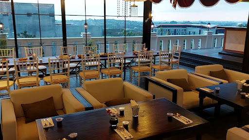 Servis ramah dan gercep. Suasana nyaman, view luar bagus banyak spot foto. Bersih dan lighting pas sore keren. Tema ramadan oke n keren. Ada live music. Meja nyaman buat tempat makan. Kursi semi sofa empuk n nyaman buat duduk. Ada indoor AC dan outdoor. Banyak ruang bertangga jadi ati2 buat yang bawa balita. Untuk lansia agak repot karna naik turun.