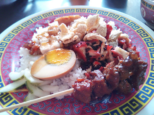 Harganya beneran murah, porsinya pun banyak. Buat babinya ada sejenis babi kecap, babi panggang, sayur asin dan telur kecap.