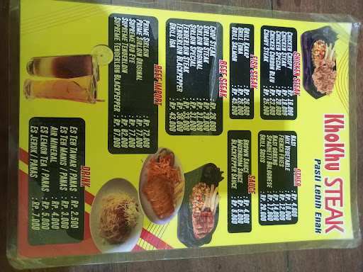 Dagingnya Empuk, Jika dibanding yang lain harga terhitung murah. Untuk lokasi mudah ditemukan. Parkir representative untuk sepeda motor. Parkir mobil karena sedikit masuk di persimpangan mungkin akan kesulitan jika keadaan resto penuh atau jalan penuh karena ada beberapa kios disekitarnya. Untuk harga dan menu lain tertera di photo. Overall.... Recomended dan cocok buat yang ingin kulineran 👍 Saya yakin Khoku steak akan berkembang 👍 Next akan kembali lagi...