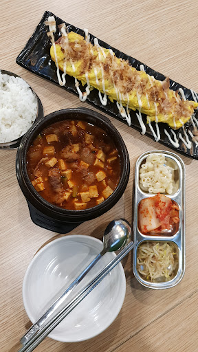 Love the ambiance, really heavily kpop themed, really spacious, nonstop playing K-pop playlist. You'll get free refill banchan such as kimchi, macaroni salad, and bean sprout in sesame oil. The service is really good and responsive. So far, all the food is delicious, that's why I keep coming back here. Can't get enough of the bingsoo they're really good. The only thing I don't recommend is the doenjang jiggae cause it's lacking content. The price is very reasonable and very much worth the price.