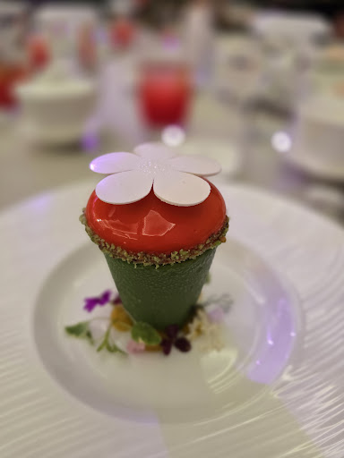 The steamed Tiger Grouper fish was served in Hong Kong style soy sauce, the sliced steak was tender drenched in oriebtal sauce with a touch of Chinese vinegar and the Ifu Mie was presented in fancy way using deconstruction approach. The dessert was beautifully served that would catch anyone's eye. The colors were aesthetically combined to enhance the elegance and rich sweet taste in various forms: custard, jelly and crunchy wafer.