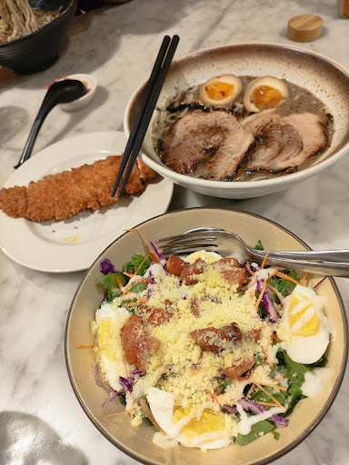 1️⃣Original Tonkotsu Ramen (pork belly topping) Portion ⭐⭐⭐⭐⭐ /5 (large) Richness ⭐⭐⭐⭐ /5 (balanced flavor) Tags: homemade al-dente noodles, thick bone broth, balanced overall richness, big portion, perfect ratio pork belly, affordable price, hearty dish 2️⃣Black Truffle Tonkotsu Ramen (pork belly topping) Portion ⭐⭐⭐⭐⭐ /5 (large) Richness ⭐⭐⭐⭐⭐ /5 (rich, authentic black truffle flavor) Tags: homemade al-dente noodles, thick flavorful bone broth, black truffle flavor burst, big portion, perfect ratio pork belly, great price to value, nourishing dish 3️⃣Chicken Nanban (with fries) Portion ⭐⭐⭐⭐ /5 (medium large) Price to value ⭐⭐⭐⭐⭐ /5 (great portion for its price) Tags: juicy breaded chicken breast, savory tangy Nanban sauce, perfect brunch dish, crispy fries, harmonious flavors, filling dish 4️⃣Caesar Salad Portion ⭐⭐⭐⭐⭐ /5 (appetizer for sharing) Flavor ⭐⭐⭐⭐⭐ /5 (excellent texture mix&match, great flavor combinations) Tags: best caesar salad in town, best appetizer, great price to value dish, authentic cheese-rich caesar dressing