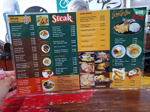 Tempat ini jadi satu antara resto Ben Tuman ( steak) dan Mbah JIngkrak, karena pemiliknya sama, hanya beda menu. Mbah Jingkrak baru muncul belakangan, yang menyediakan masakan traditional tempo dulu. Untuk kunjungan pertama ini, sy lebih memilih menu2 mbah Jingkrak. Saya pesan nasi, sayur lodeh tempe, dan oseng daun papaya. Enak semua. Menu masakan rumahan spt ini memang bikin makan jadi terasa lebih hommie. Tidak sekedar nikmat di rasa, tapi juga nyaman di hati, apalagi jika menikmatinya bersama klg.
