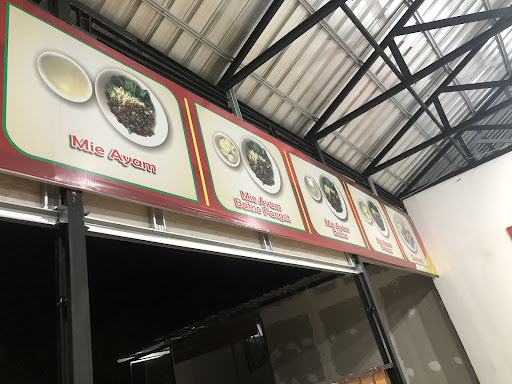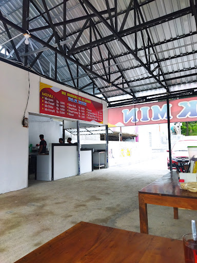 Lokasinya agak masuk ke dalam, jadi tidak begitu nampak apabila dilihat dari jalan raya. Tapi ada papan petunjuk dengan tulisan mi bandung pak min yang berwarna hijau dan cukup besar.